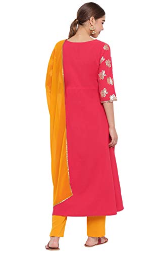 Janasya Women’s Poly Crepe A-Line Kurta With Pant And Dupatta